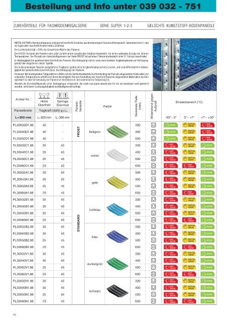 Temperaturen. Der Einsatz von Kunststoffpaneelen der Serie FROST ist auf einen Temperaturbereich unter 0° Celsius beschränkt.