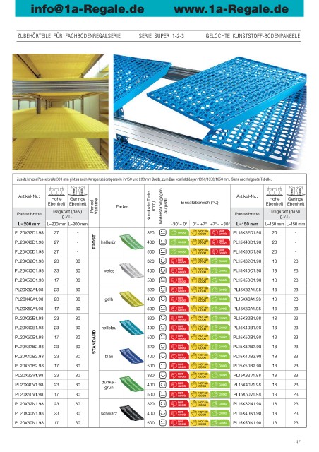 ZUBEHÖRTEILE FÜR FACHBODENREGALSERIE SERIE SUPER 1-2-3 GELOCHTE KUNSTSTOFF-BODENPANEELE
