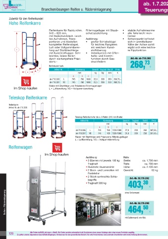 120 Es gelten unsere allgemeinen Geschäftsbedingungen. Verkauf nur für den gewerblichen Bedarf. Für evtl. Preisirrtümer, Satz und/oder Druckfehler wird keine Haftung übernommen.