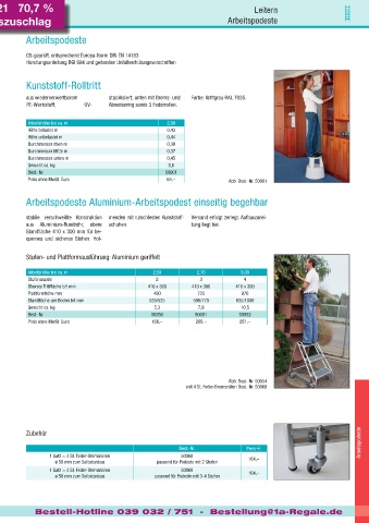 Podestleitern Arbeitshöhe bis ca. m 0,77 x 1,24 0,82 x 1,41 0,88 x 1,58 0,94 x 1,75 1,00 x 1,92 1,06 x 2,09 Zubehör Best.-Nr. Preis 1 Arbeitspodeste