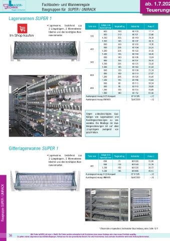 Fachboden- und Wannenregale ab. 1.7.2021 70,7 % Fachboden- und Wannenregale