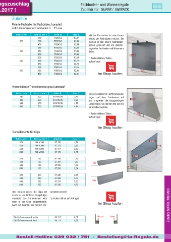 Tiefe ca. mm Höhe ca. mm *) Artikel-Nr. Preis 1 Mit den Fachteilern ist eine Unter-