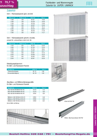 Zubehör SUPER / UNIRACK Stirnwand glatt Stirnwand gelocht 2000x400 kompl. 63204 101,88 Mittel- / Abschlussverbinder StW / RW Zubehör SUPER / UNIRACK