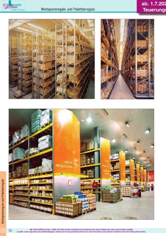 Weitspannregale und Palettenregale Teuerungszuschlag Weitspannregale und Palettenregale