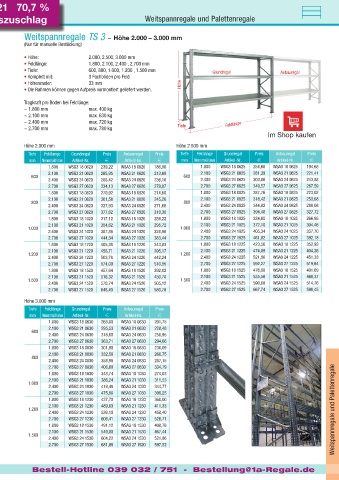 Weitspannregale und Palettenregale 1.200 2.400 WSG3 24 1030 419,48 WSA3 24 1030 344,77 Weitspannregale und Palettenregale