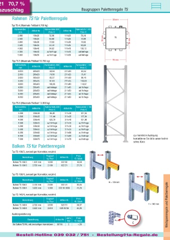 B a u gr up p e W ei t s p a nnr e g a l e TS Teuerungszuschlag Baugruppen Palettenregale TSTS