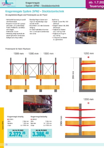 und Langgut. - Der Sicherheitsfaktor ist mindes- • Tragkraft pro Ständer