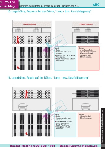 9. Regalanlage mit aufliegender Lagerbühne, "Lang bzw. Kurzfeldlagerung" 11. Lagerbühne, Regale auf der Bühne, "Lang bzw. Kurzfeldlagerung"