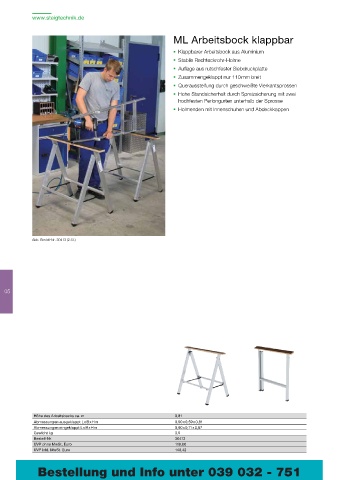 Abmessungen ausgeklappt L x B x H m 0,90 x 0,59 x 0,81 Höhe des Arbeitsbocks ca. m 0,81