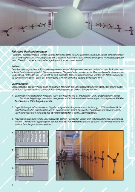 2. Lagerfläche optimal mit fahrbaren Regalen ausgestattet (Lagervolumenoptimierung): 100% der Raumfläche